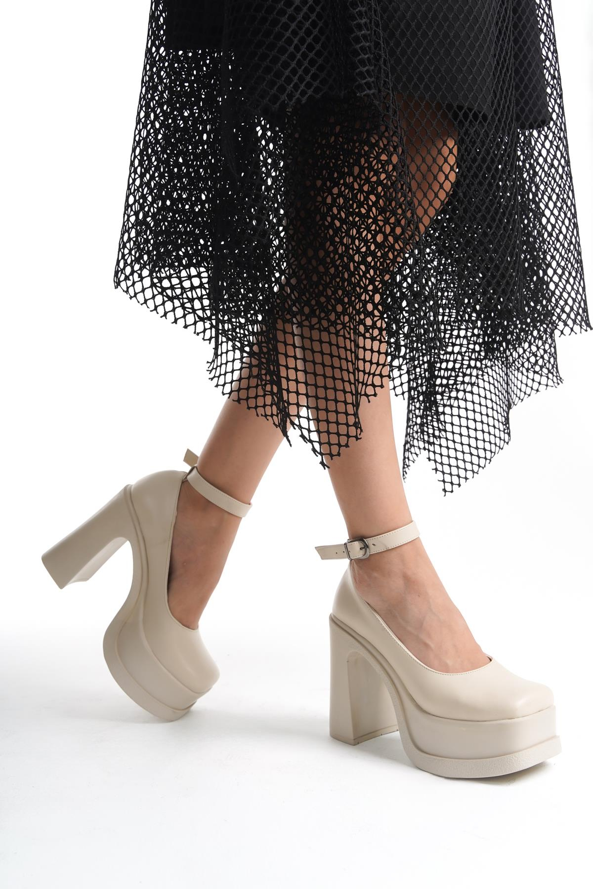 Kadın Della Bilekten Bağlamalı (12cm) Platform Topuklu Ayakkabı krem