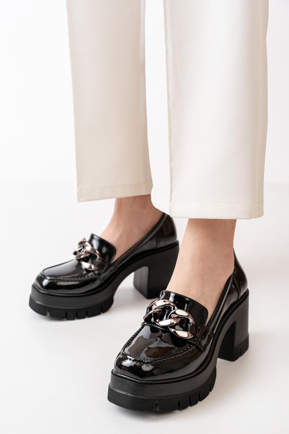 Kadın Zincir Tokalı 8 cm Topuklu Platformlu Ayakkabı  Siyah