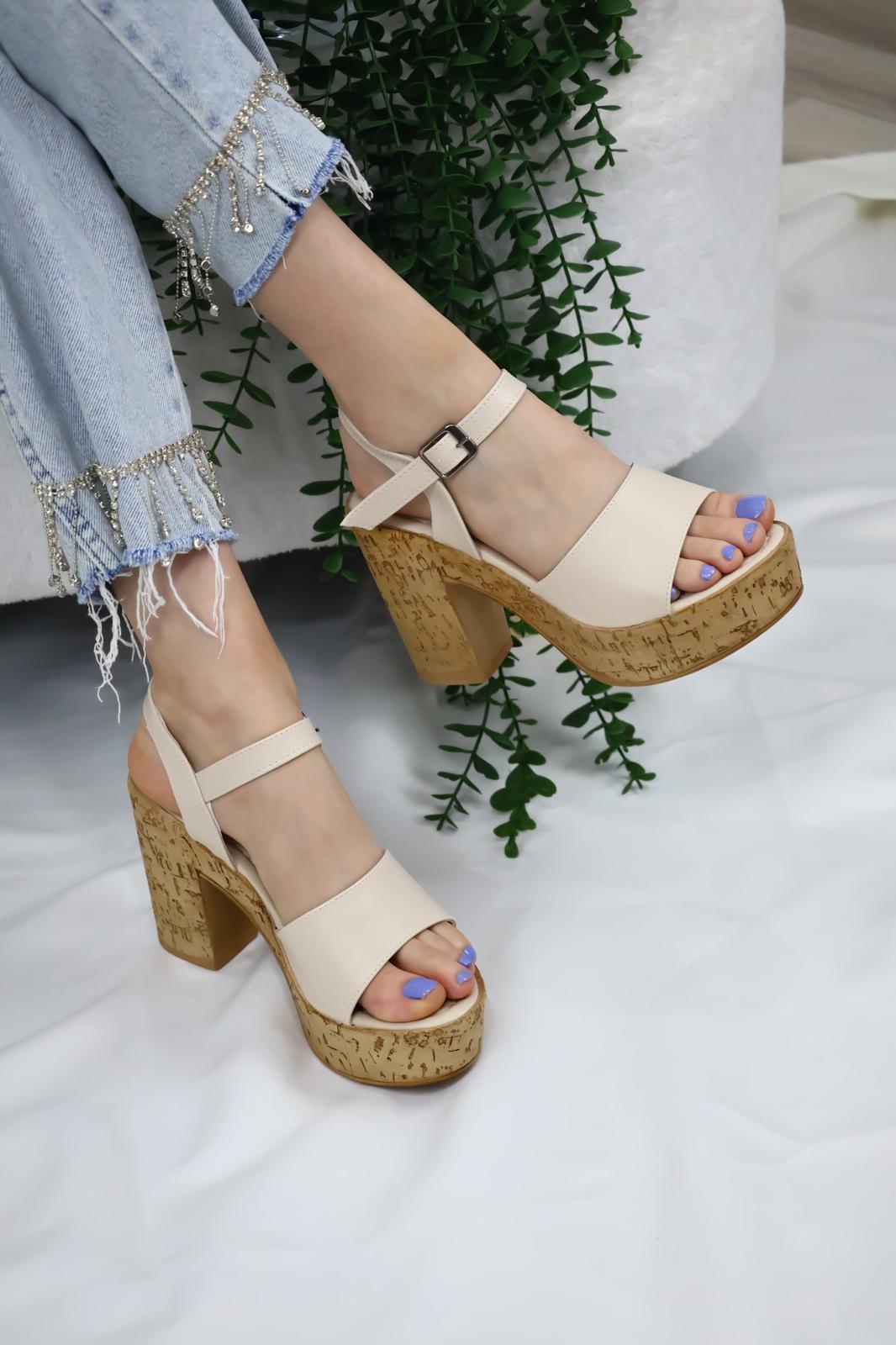 Kadın Adara Tek Bant Platformlu Ayakkabı (10 cm) Bej