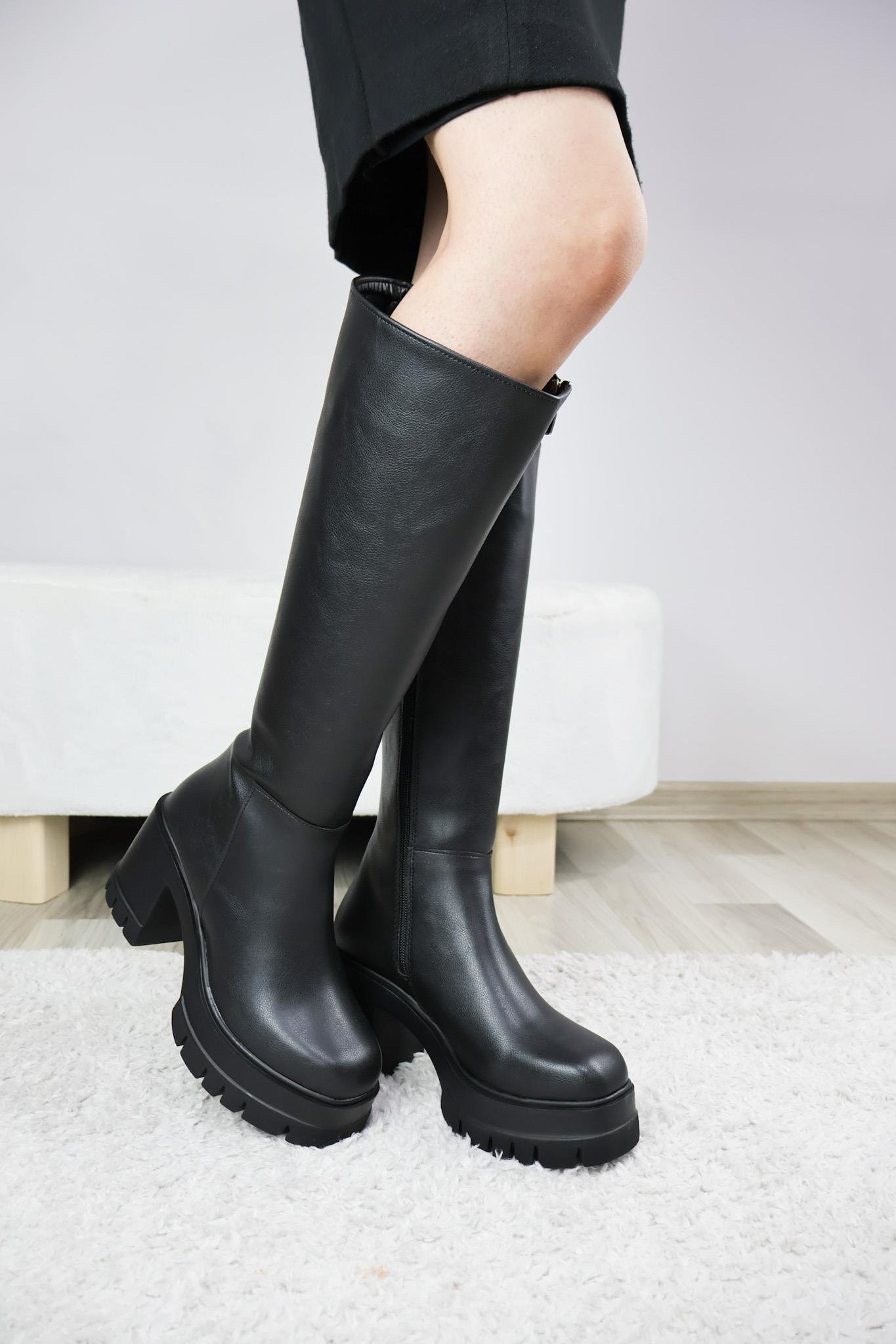 Kadın Lagora Diz Altı 8 CM Topuklu Çizme siyah